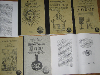 Trithemius: Von der unteren Astronomie ( mit Diagrammen) , Paracelsus: Eine wahrhaffte gegründete Theorie , Die Erklärung der vier Arcana Theophrasti , Paracelsus: Tinctura Physicorum ( deutsch) , Kabbalistische Gedichte vom Stein der Weisen , Paracelsus: Die Reduktion der Metalle in ihre erste Materie , Paracelsus: Die Figierung des Mercurius des Saturns , Paracelsus: Aurum diaphoreticum (deutsch) , Die Praxis König Salomos, den Stein der Weisen betreffend , Salomon Trismosin: Der rote Löwe , Laurentius de Ventura: Buch vom Stein der Weisen, u.v.m!